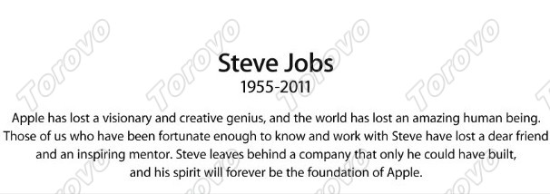 蘋果公司官方網站首頁目前已換成喬布斯大幅照片,以及“1955-2011”字樣。網站發布的消息說:“蘋果失去了一位富有遠見和創造力的天才,世界失去了一個不可思議之人。”蘋果董事會發表聲明,沉痛宣布并悼念喬布斯。